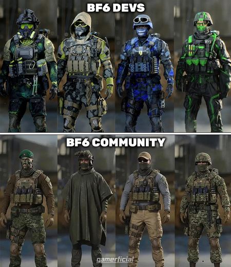 GAMERFICIAL original FB post @shockwavez Huge thanks to youtuber shockwavez VIDEO 1 Real military units that would make perfect Battlefield 6 skins (and why) VIDEO 2 (More) Real military units that would make perfect Battlefield 6 skins — and why, pt.2 VIDEO 3 I analyzed Battlefield 6 skins using the laws of war.. EA, Dice, come on, start getting serious. Add pin removal on RPG as well, so they wont be so spammy. Rework everything Maps + skins + physics + remove sliding ! Add real time physics to bullets for each type of ammo certain weapon uses. Go on firing ranges, record, measure velocity for each gun and ammo, that has its own penetration capabilities or damage types on armor or human flesh and on solid surfaces. Add BIG MAPS, rework old maps (higher sky box, larger out of bounds areas for interesting flanks ). Bring back GRAND OPERATIONS, NAVAL WARFARE soon, FLOODED MAPS, natural occurrences, NIGHT OPERATIONS TIED TO CAMPAIGN locations. Make game make more sense, why are you fighting on certain location on the world, why your contribution matters to the win. Make option to choose, which faction to fight for before match. Last but not least, implement World War 3 customization mixed with BF5 for example.Feedback and Suggestions for Battlefield 6