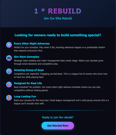 *League Details* * **Platform: PS5 or Xbox * **Advance:** Every 48 Hours * **Communication:** Discord (Required) * **Skill Level: All-Around (We have a mix of players, all we ask is that you play sim-style and don't quit) * **Rules: We have a simple set of sim-style rules to promote realistic gameplay and prevent cheese. Ready to join a stable, fun league that actually lasts? https://discord.gg/WqJnSAxe16Views0likes0CommentsDynasty: Time of Game and Weather