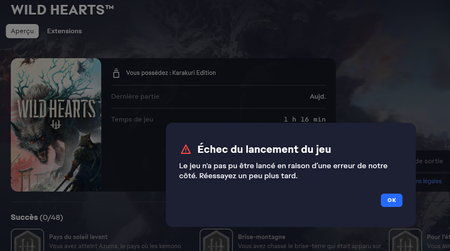 hello, j'ai voulu commencer wild heart, et après avoir jouer une demi heure le jeux a freeze puis crash et depuis... il ne fait que ca, des que le joueur prend les commandes le jeu freeze et retour bureau. j'ai essayé de réparer, désinstaller réinstaller, les truc habituel mais rien n'y fais et même en recommençant le jeu, l'intro se lance et quand c'est au joueur de prendre les commande freeze et bureau sans message. y a t il une manip pour régler le problème? joint dxdiag.txt, le jeu a l'air vraiment bien, dommage248Views2likes6Comments
